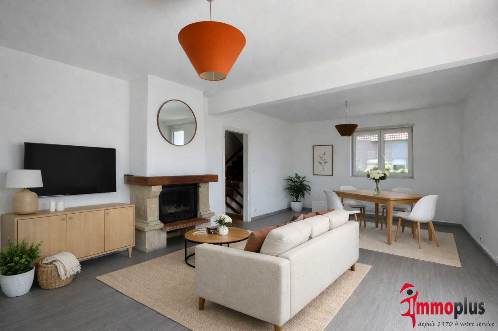 Très au calme ! Grande maison individuelle de 5 pièces et d'une surface de 102 m² environ sur 5,80 ares de terrain clos et arboré, à 2 minutes des axes autoroutiers !