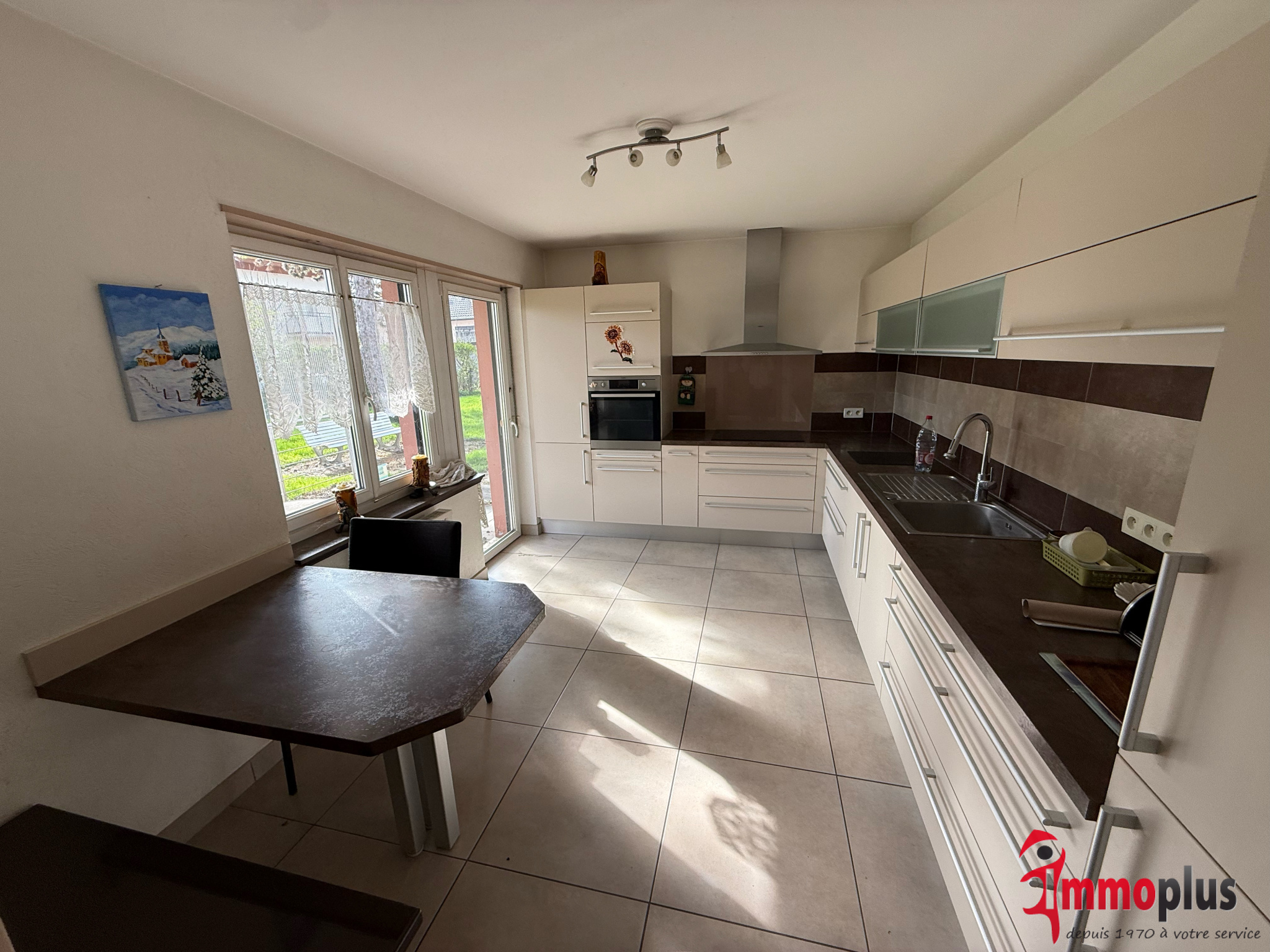 Superbe appartement de type F4, de 112 m², en rez-de-jardin dans une petite copropriété (4 appartements) au cœur d'un parc au calme, proche du Rhin/frontière et toutes les commodités ! Ce bien, vous séduira immédiatement grâce à ces prestations de qualité et sa situation ! Comprenant : Entrée/dégagement, un grand séjour, muni d'une cheminée, une cuisine américaine, complètement équipée qui donne accès sur la terrasse et le parc qui fait partie de la copropriété, une salle à manger qui pourrait être une chambre, deux grandes chambres à coucher, une salle de bain avec douche/vasque, un toilette séparé ! Fenêtre en double vitrage, PVC, électricité, refaite, belle prestation… viennent de compléter ce bien un grand garage, box à l'extérieur, et une cave au sous-sol. A VOIR ABSOLUMENT ! Pour plus de renseignements, et veuillez contacter Christophe Verguet au 06.01.84.40.85. L'Agence Immoplus À Votre Service depuis 1970 !
